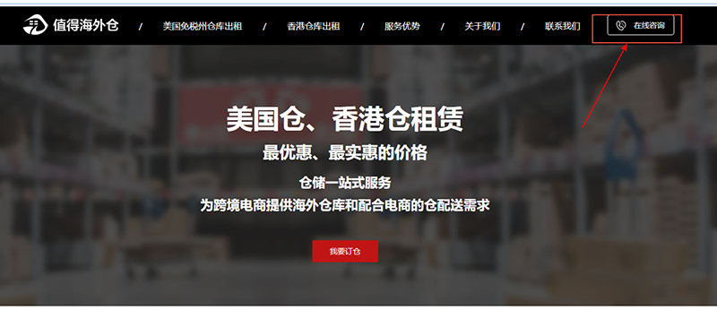 我們進入官網(wǎng)可以看到,他們有租賃美國倉業(yè)務的,右上角有咨詢在線客服,在預定美國電商倉庫有任何不懂的都可以問他們,當讓也可以在租賃美國倉的頁面咨詢也是一樣的。他們的客服一直都很專業(yè),有著豐富的倉庫租賃經(jīng)驗,絕對能給你滿意的回答。